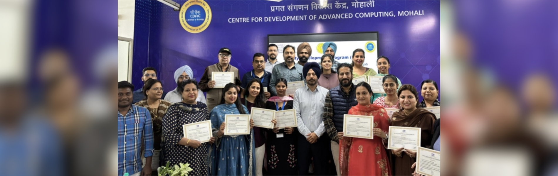 that Er. Jaspreet Kaur (Vertical Head of Cybersecurity) has successfully completed 5-Day Faculty Development Program (FDP) on “Foundations of Cybersecurity: A Hands-on Approach for Secure Systems” organized by Electronics and ICT Academy (an initiative by MeitY) at Centre for Development of Advanced Computing (C-DAC), Mohali in collaboration with the Department of Technical Education and Industrial Training, Punjab.